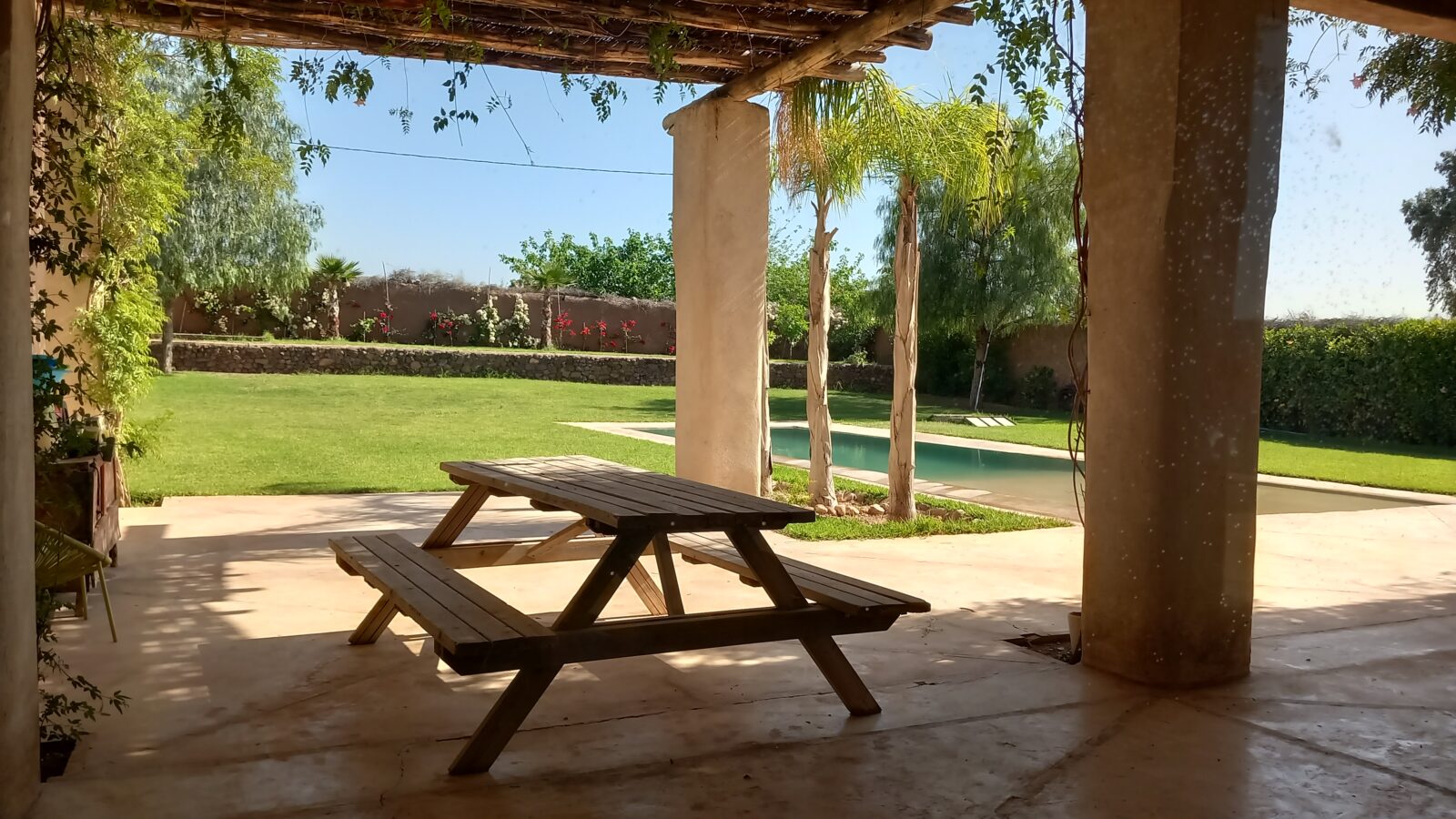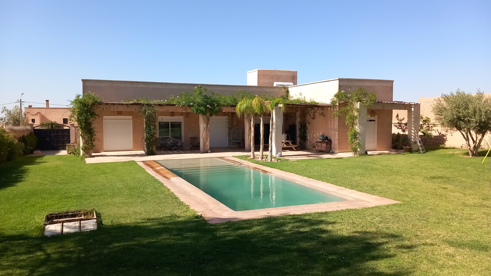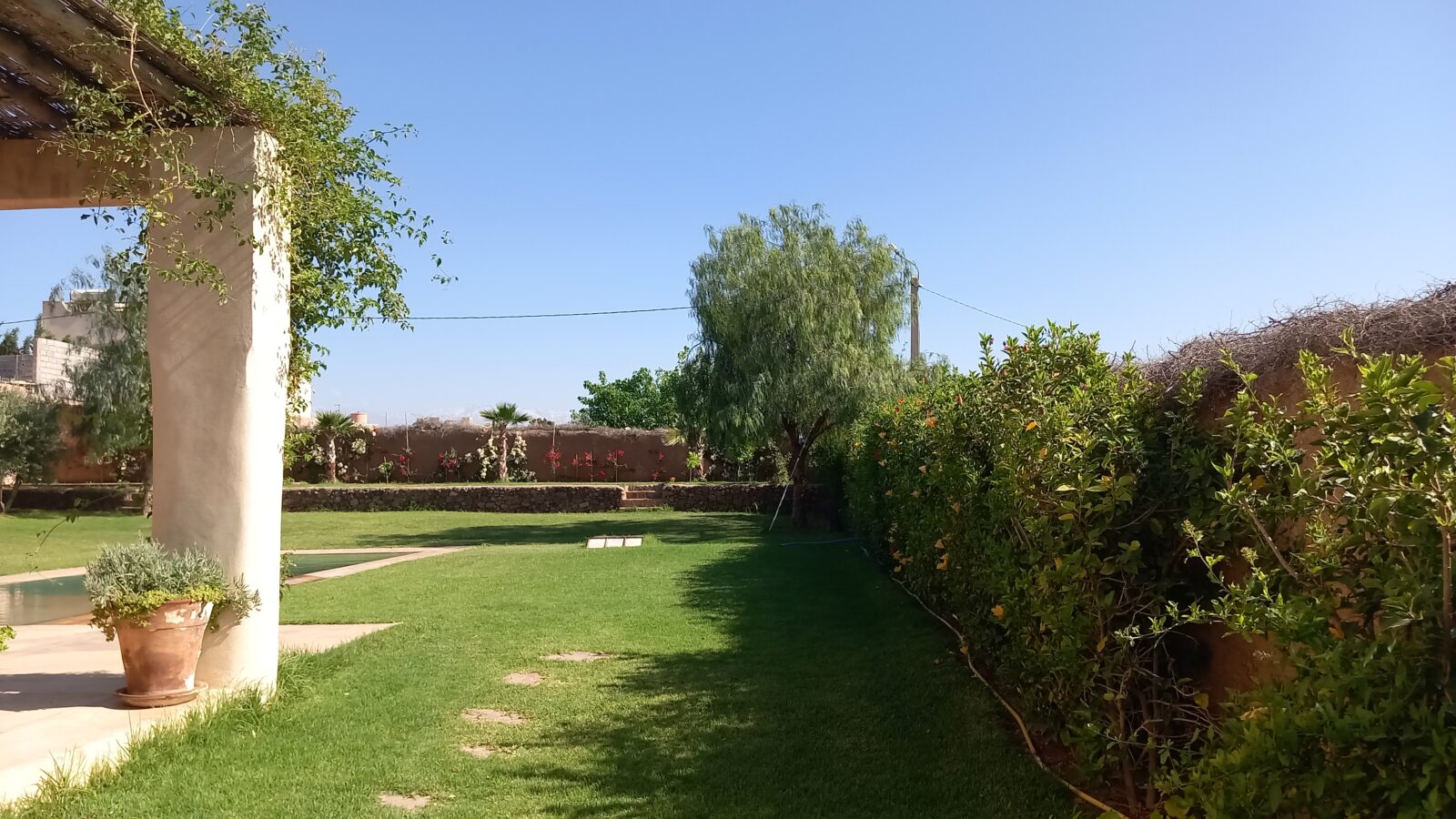 sur un terrain de 1462 m2 et d’une surface de 200 m2 habitable environ. Parfaite orientation plein sud vers les montagnes. Très joli petit jardin. Piscine tadelakte, puits, château d’eau.