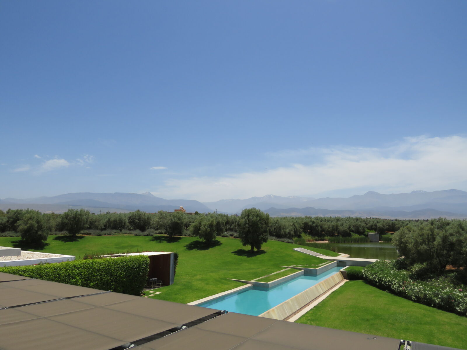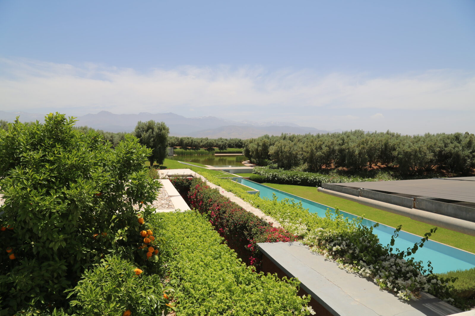 L’ensemble s’étale sur une surface de 44013 m². Du parc comme de la maison, cette propriété d’exception offre des vues splendides sur les sommets enneigés et les contreforts de l’Atlas l’automne, l’hiver, le printemps … mais aussi l’été quand l’air est pur. Rien n’a été laissé au hasard dans cette création originale et moderne, chaque élément qui la constitue s’imbrique pour sublimer le tout.